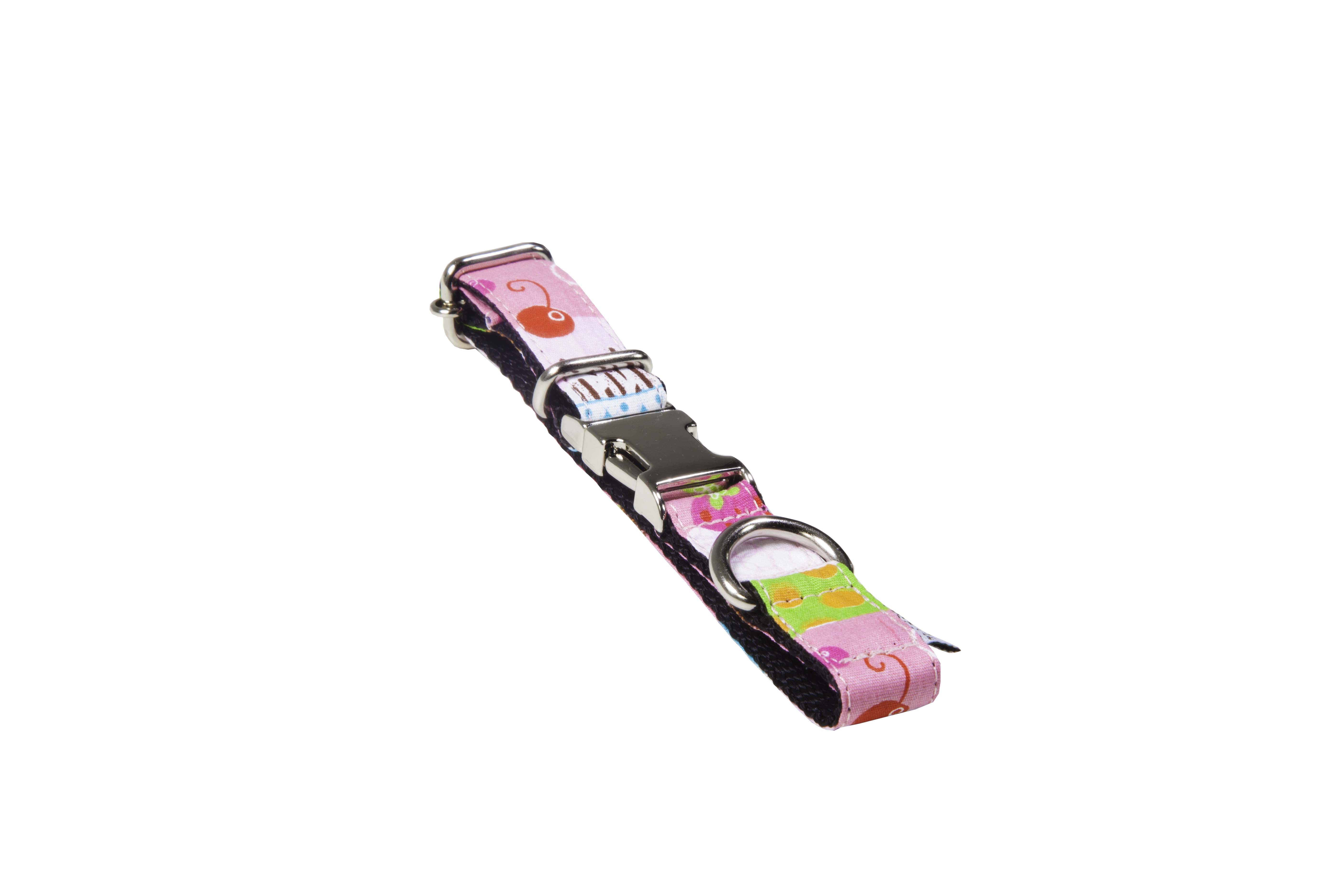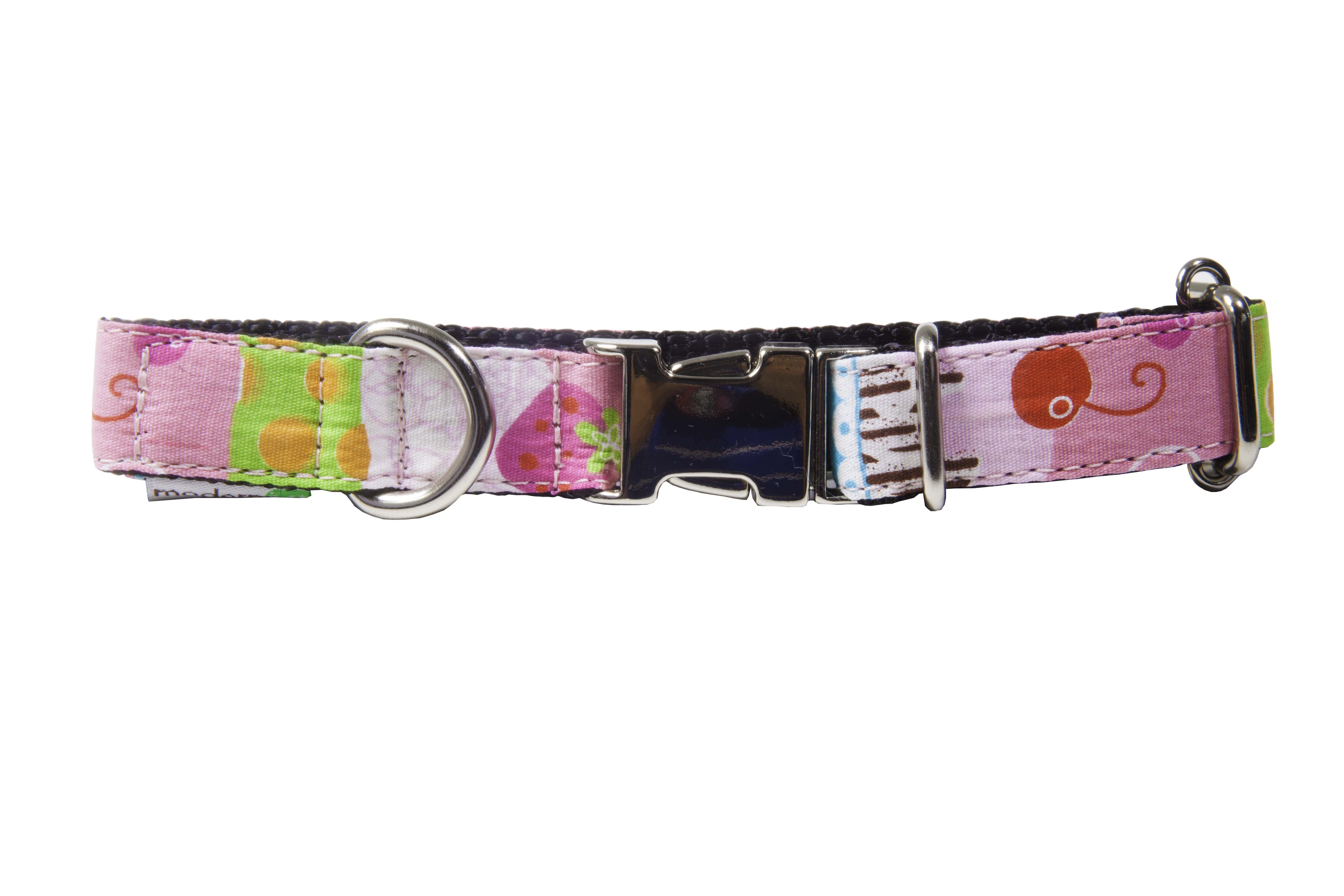 A Coleira ModernPet Tecido Cupcake é ideal para passeios e caminhadas com o seu pet, fabricada 100% à mão com fecho de alumínio fundido,com banho de níquel e tecido antialérgico. Proporciona estilo e conforto no dia-a-dia.
